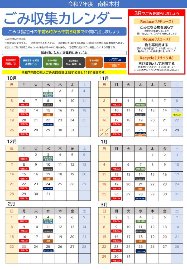 令和7年度ゴミ収集カレンダーはこちら(PDF)