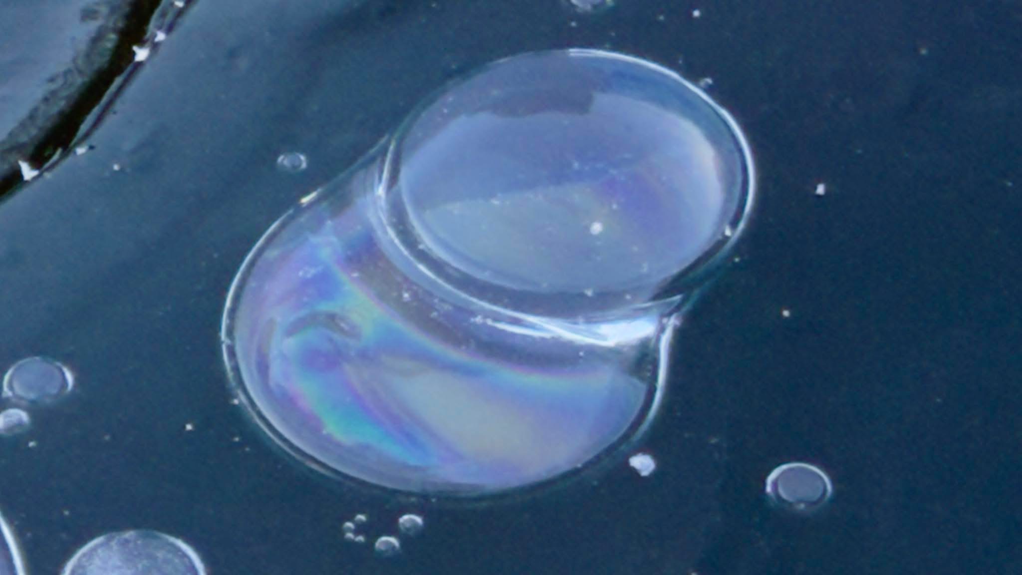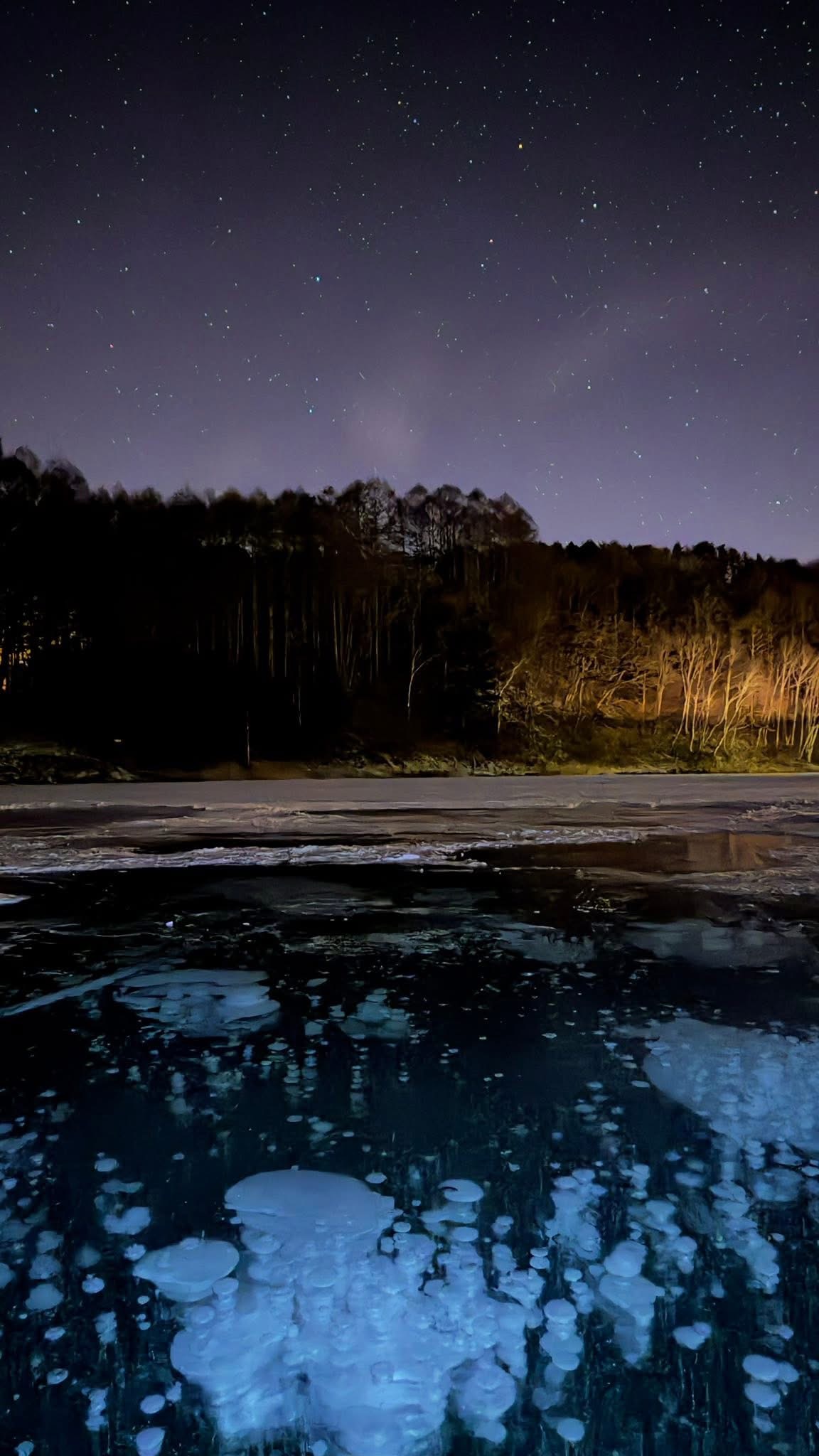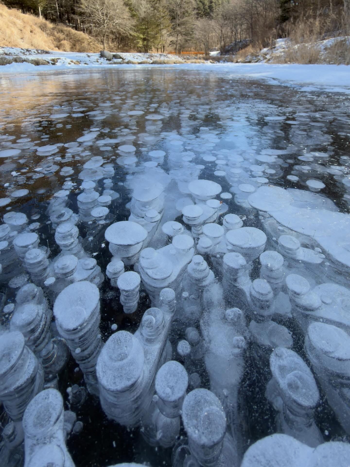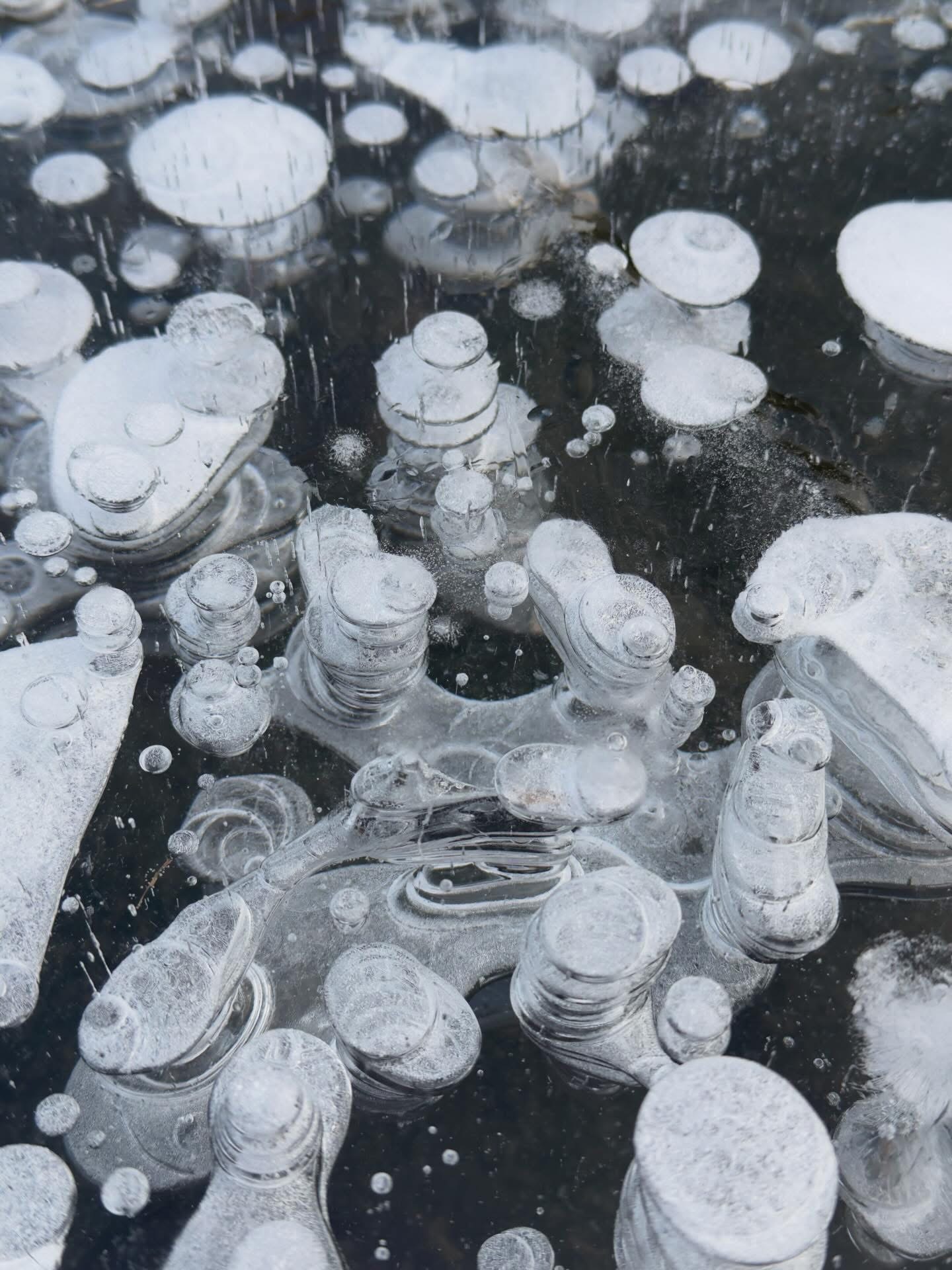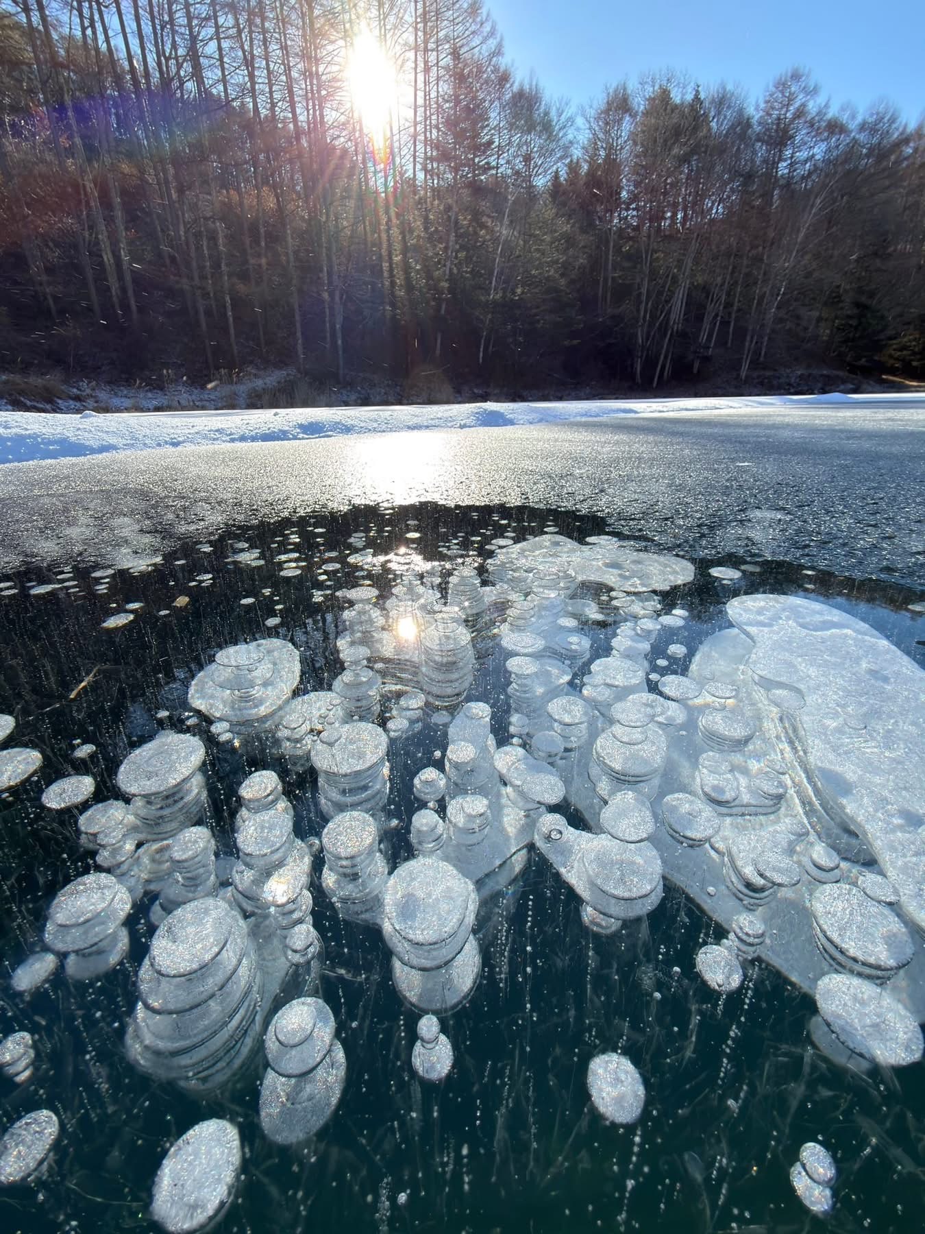 アイスバブルとは、湖やダム湖などの水面が凍る過程で、