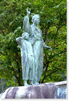 戦後四十年、往時を回顧し村民相はかつて戦没者に対する鎮魂と平和への悲願をこめて、ここに「不戦の像」を建立いたしました。